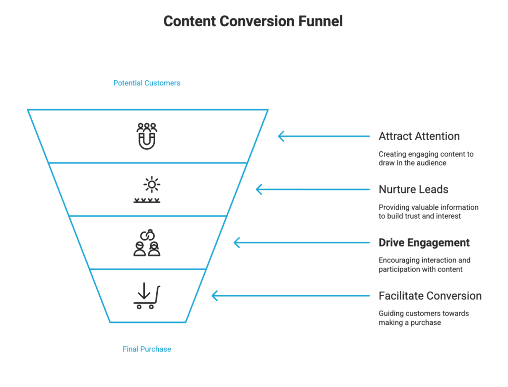 • Conversion: Targeted content guides leads through decision-making toward purchase.