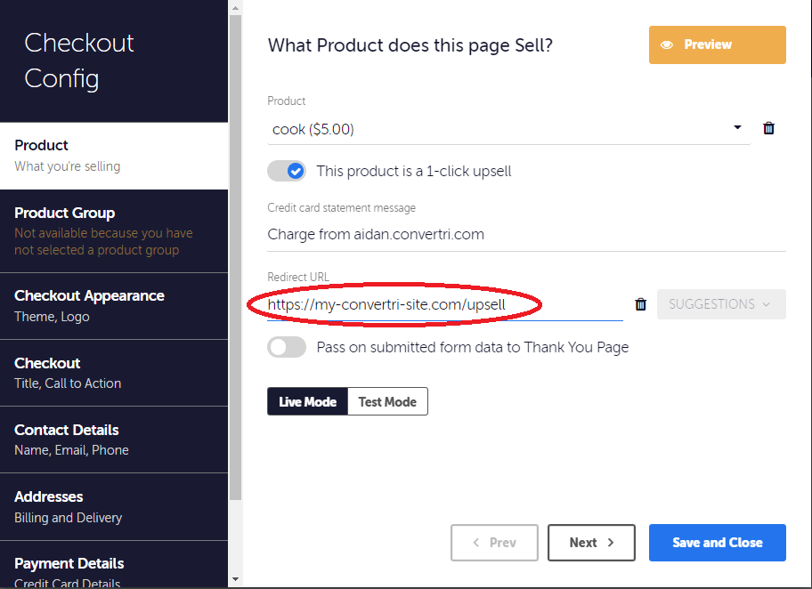 - Select the product you want to offer, then check “This product is a 1-click upsell.”